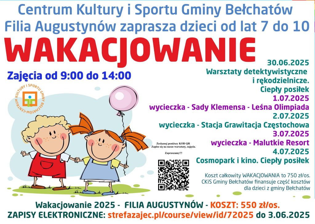 Centrum Kultury i Sportu Gminy Bełchatów Filia Augustynów zaprasza dzieci od lat 7 do 10.
